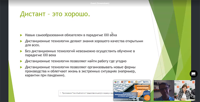 «Диалог» продолжился докладом Виктора Волчека, инженера-исследователя Института проблем информатики РАН, в котором он отметил тенденцию смены парадигмы образования: с «образования на всю жизнь» на «образование в течение всей жизни». Последняя парадигма вполне успешно поддерживается дистанционными формами обучения, которые «делают знания хорошего качества открытыми для всех». Однако есть и отрицательные моменты «дистанта»: «Во-первых, в семьях не хватает техники и мощности каналов связи. Во-вторых, нагрузка по организации процесса обучения полностью ложится на родителей, к чему они могут быть не готовы. В-третьих, у детей могут появиться признаки выгорания, проблемы как с физическим, так и психическим здоровьем», - поделился выводами Виктор Волчек и добавил, что справиться с этими проблемами помогут навыки тайм-менеджмента, которыми должны получить не только дети, но родители, организация рабочего места и расписания. Нельзя забывать и о безопасности: в домашней сети должны быть настроены фильтры, а для детей созданы отдельные, защищенные, учетные записи для входа в интернет.